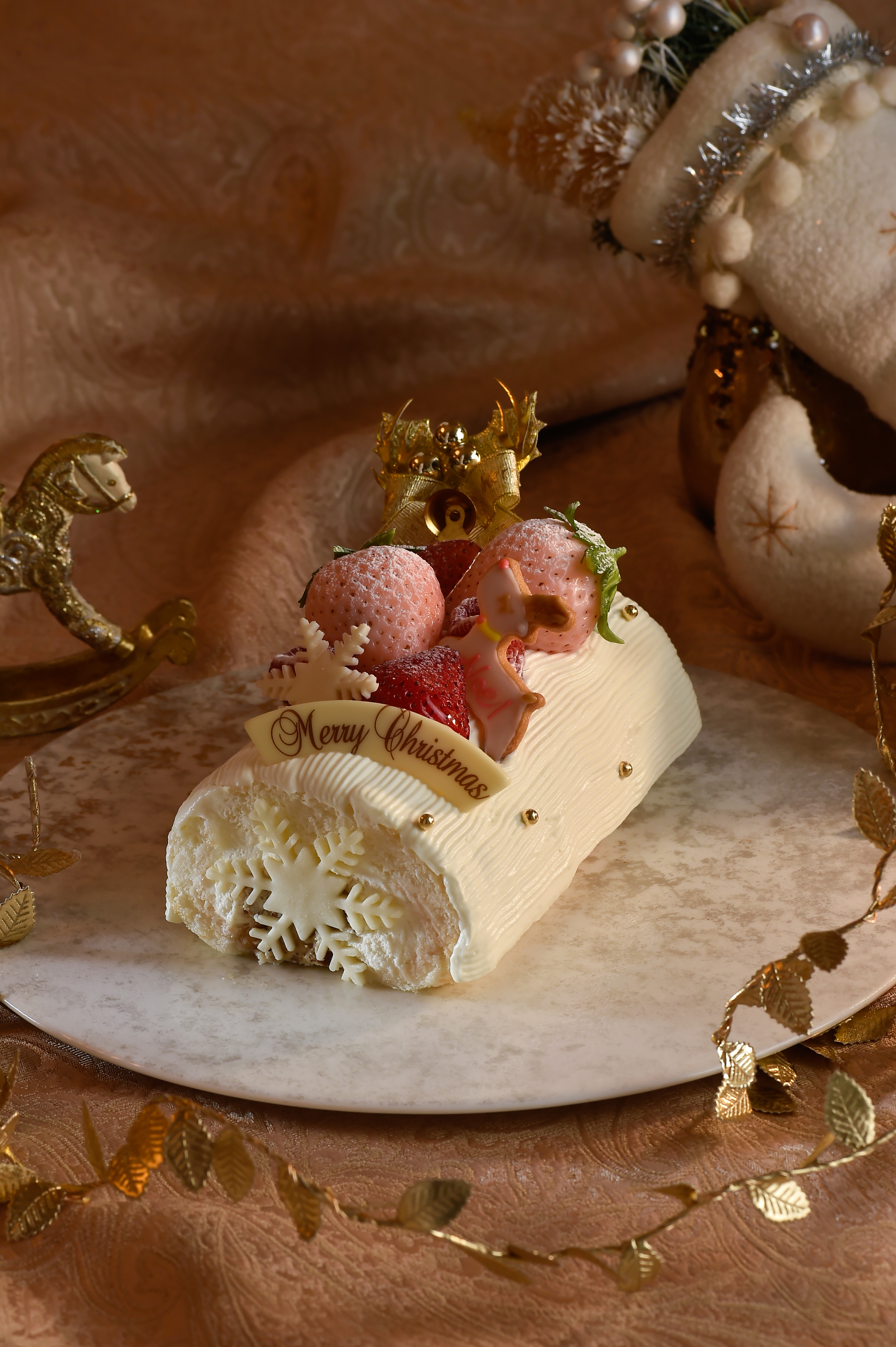 ふんわりと焼き上げたスポンジに、甘酸っぱい苺と上品なマロンクリームをサンド。口の中に広がる栗とナッツの香りと苺のフレッシュな味わいが、贅沢な時間を彩ります。クリスマスのテーブルを華やかに飾る一品です。